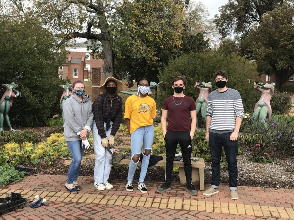 The Office of Sustainability honors Dr. Martin Luther King's legacy through service and volunteerism, demonstrating how joining in service can transform your life and the lives of others through systems thinking, futures thinking, and self-awareness. Service not only improves the community, but it also has the power to unite people, build bridges, and heal divides, and Campus Green is a place to gather and share experiences. The theme gardens are home to endangered sunflowers, wildflowers, and native pollinators (bumble bees, carpenter bees, butterflies, and other insects). This space illustrates the intersectionality of human and natural systems.